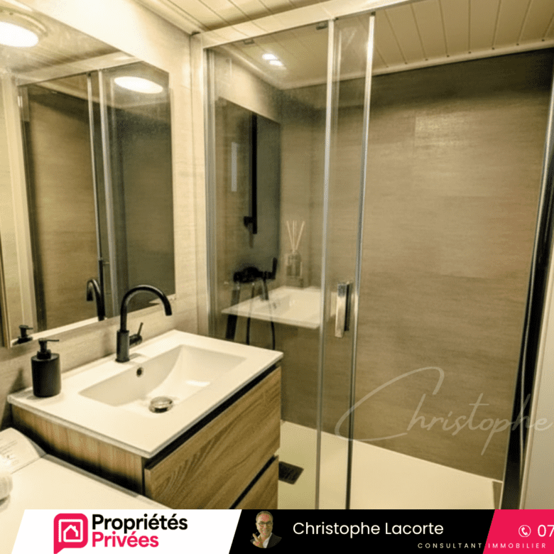 Proche des tennis, de la pétanque et de la piscine et à proximité immédiate des commerces.