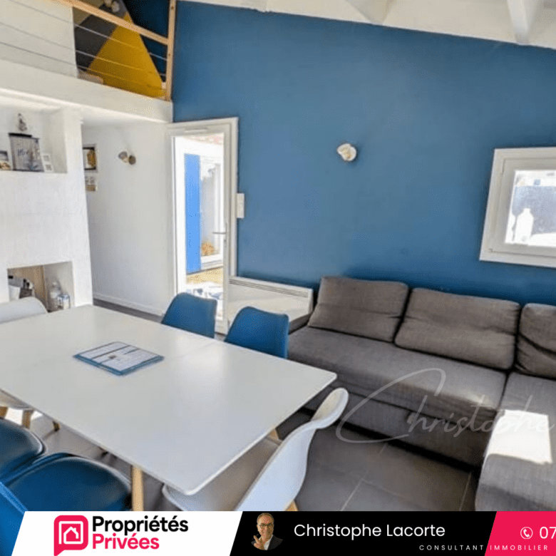 Ferme marine de 3 pièces de plain pied (type T3 sol) de 48 m² avec hauteur sous plafond et Mezzanine. D’une capacité de 6 à 9 couchages, cette belle ferme marine rénovée en 2021 vous charmera par sa clarté et la mise en valeur de ses volumes.